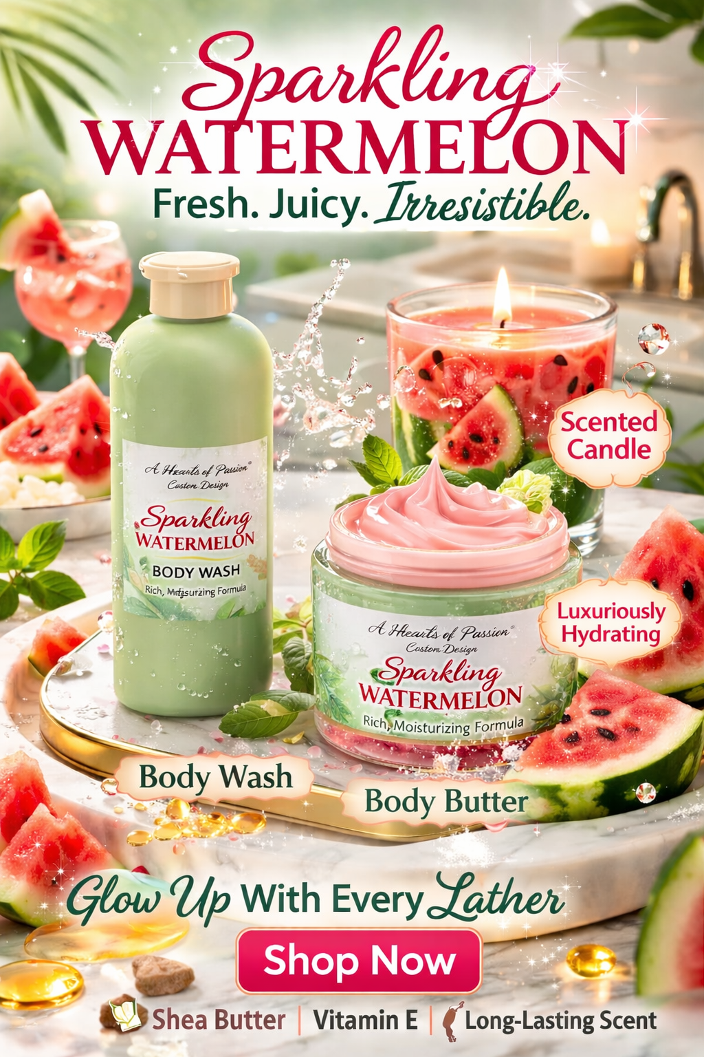 Shop Luxury CollectionIndulge your skin in the irresistible luxury of our Hearts of Passion Luxury Duo, a perfectly paired combination of our nourishing Body Wash and Body Butter designed to cleanse, hydrate, and leave your skin beautifully scented. The rich, silky body wash gently washes away impurities while surrounding you in the irresistible Hearts of Passion fragrance—sweet, alluring, and unforgettable.